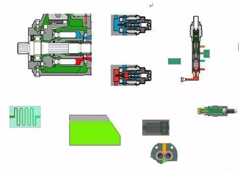 除了常規(guī)的柱塞泵缸體柱塞等主泵的元件外,它還集成了一個(gè)補(bǔ)油泵、補(bǔ)油壓力溢流閥、補(bǔ)油單向閥、兩個(gè)高壓溢流閥、一個(gè)壓力切斷閥和變量機(jī)構(gòu)等。